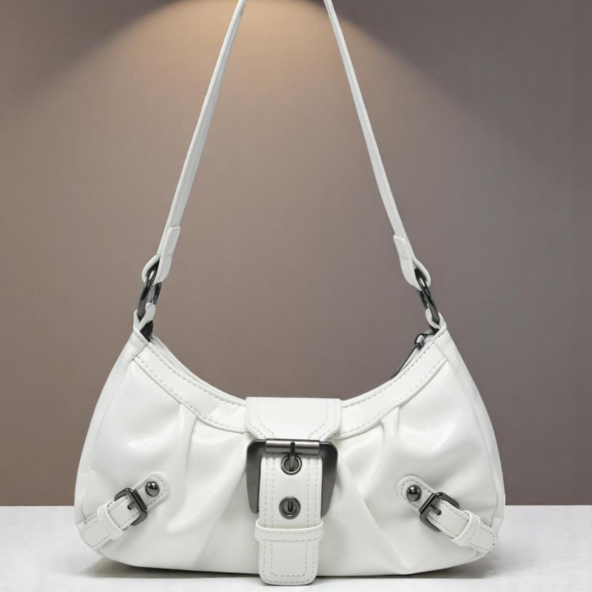 This inspired pleated shoulder bag features stylish rivet accents and a sleek armpit design. Made from high-quality PU leather, it’s the perfect handbag for streetwear looks, daily outfits, or standout fashion moments.
