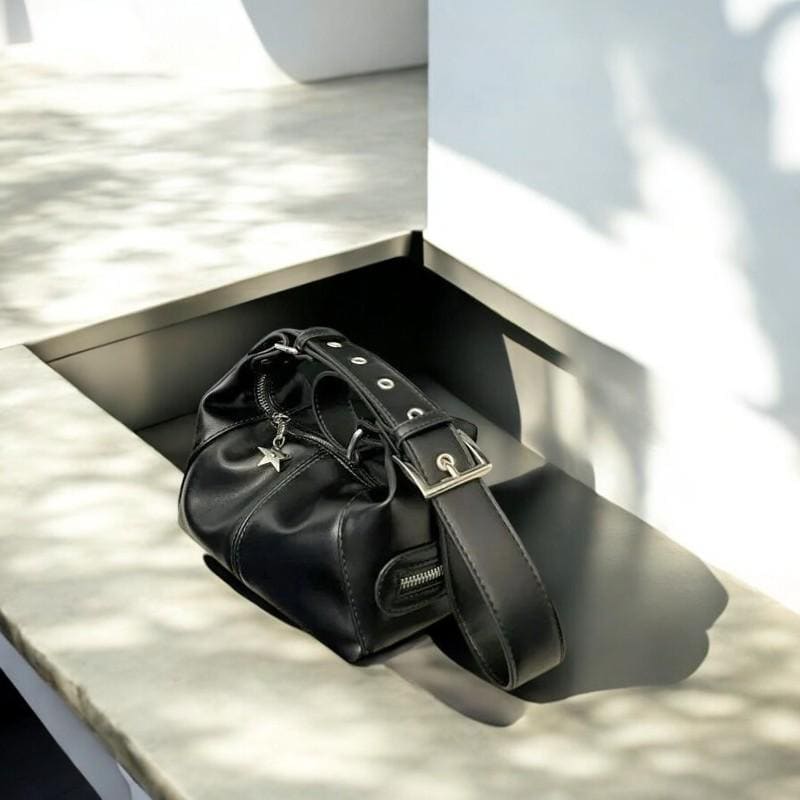 Women's Y2K Gothic Designer Leather Handbag | Harajuku Aesthetic Black Shoulder Bag | Vintage Crossbody Tote Women | Trendy Messenger Bag