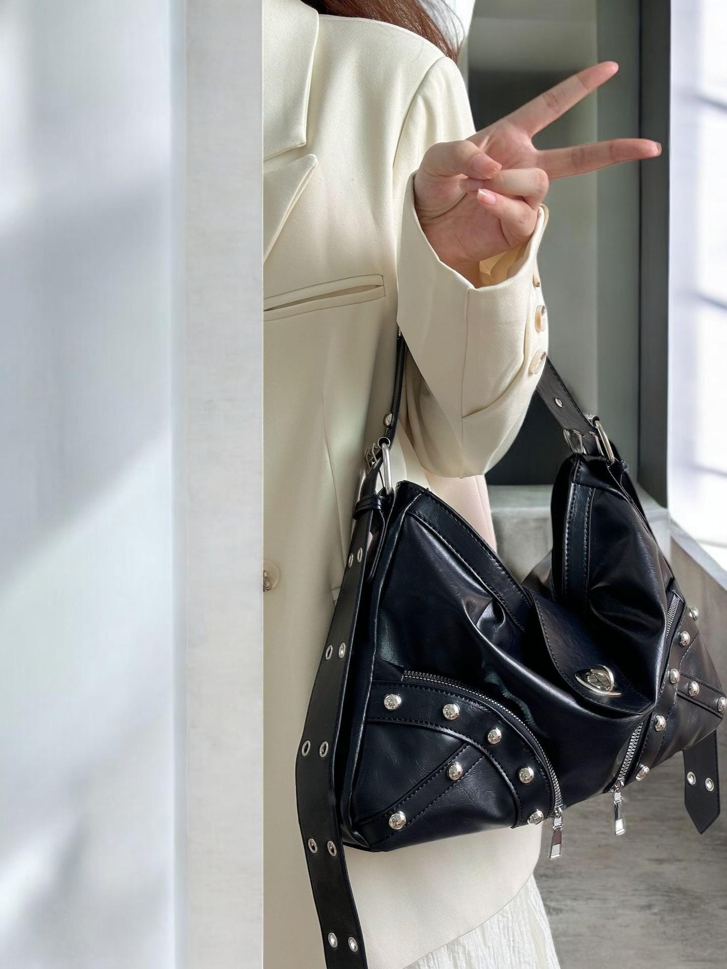 Y2K Gothic Rivet Shoulder Bag | Vintage Black Punk Handbag | Designer Large Capacity Crossbody Bag for Women | Rock Style Purse | Women Bag